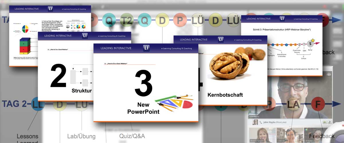 Die Teilnehmer/innen der Schulungsmaßnahme erhalten Zugang zur Lernplattform von LEADING INTERACTIVE, die mit ihren Support-, Gruppenforen und Materialien als Kommunikationszentrum dient. Dort eingebunden haben die Teilnehmer/innen Zugriff auf das Webinar-Tool „Adobe Connect Pro“, das wir für die Live-Sitzungen verwenden.